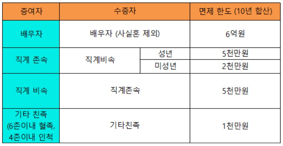 또한, 증여세 면제 한도 구간을 넘는 나머지 액수가 있을 경우 차용증 작성을 통해 차용을 하는 방법이 있습니다. 또한 증여를 미리 미리 해두어 면제한도 금액을 넘지 않게 증여를 해주는 방법도 있는데요, 면제한도는 10년마다 초기화 되므로 이 방법을 이용하는 것도 좋습니다.
