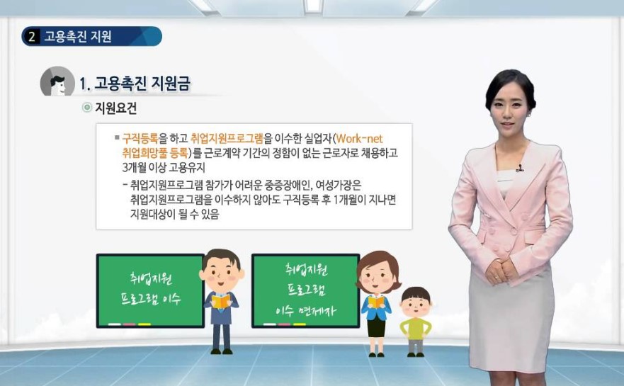고용촉진지원금 대상자의 조건을 간단히 말하면 고용노동부장관이 지정한 취업프로그램을 이수한 자를 고용한 사업주나 구직 등록을 한 장애인, 여성가장과 같은 취업취약자를 고용한 사업주입니다.