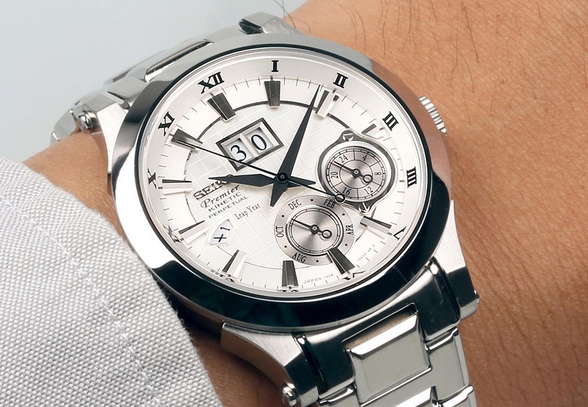 해밀턴과 마찬가지로 조금 낮은 가격대의 시계 브랜드로 세이코 프리미어도 있습니다. 50~110만원대의 낮은 가격이긴 하지만 키네틱이라는 독자적 반영구 무브먼트 사용해 시계를 착용한 사람이 팔을 흔들면 시계 안의 초소형 발전기가 구동되고, 여기서 나온 전력으로 시계 내부 배터리가 충전되어 구동되는 신기한 방식의 시계입니다.