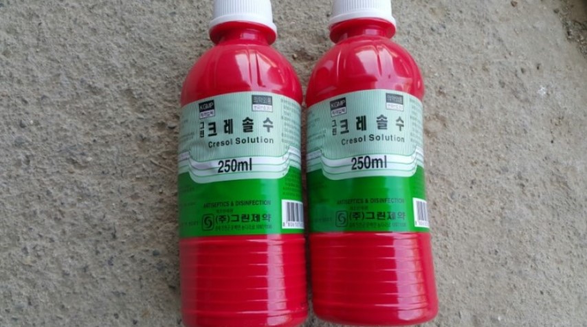 농민들이 가장 많이 사용하는 고라니 퇴치법이 바로 크레졸을 이용하는 것인데요. 약국에서 2천원이면 쉽게 구입일 가능하고 효과도 빨라 이 방법을 많이 사용하고 있습니다. 또한 위 2가지 방법들과 병행해서 사용도 가능하죠.