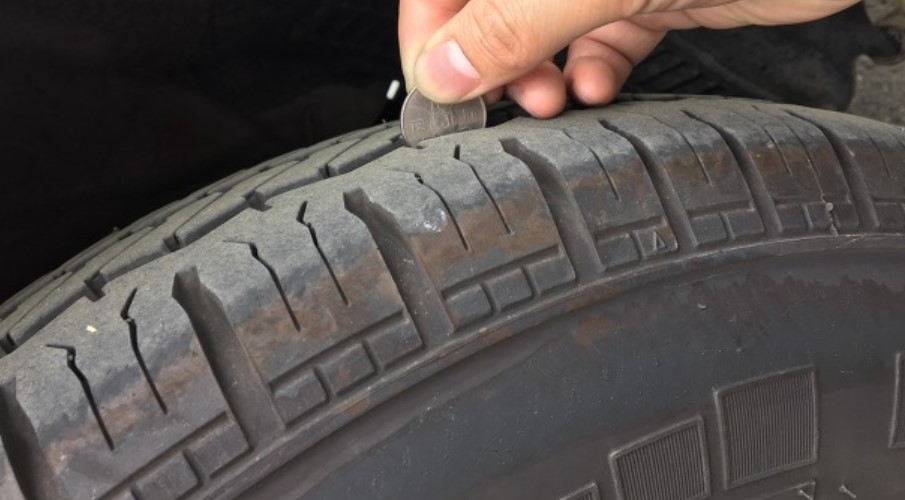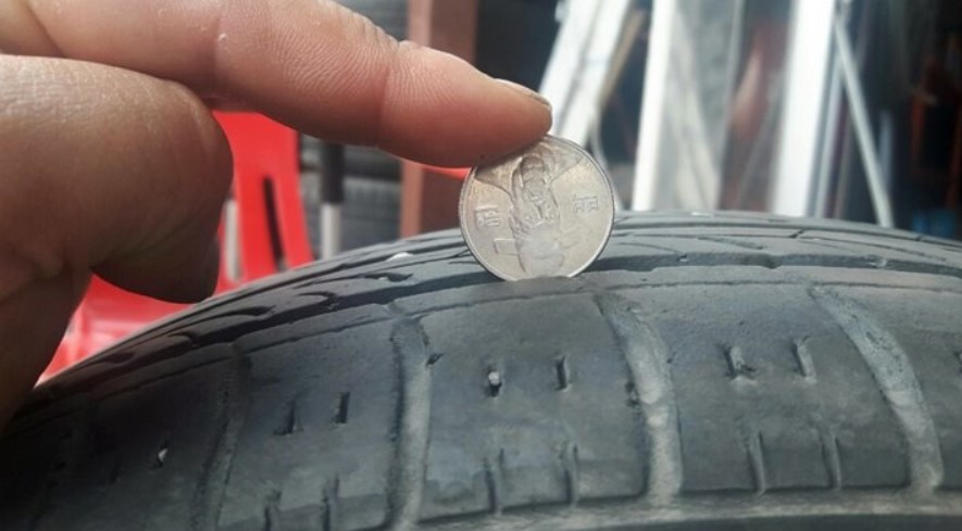 타이어의 상태를 파악하기 위해 사용되는 방법은 바로 사람들에게 잘 알려진 동전을 사용한 방법입니다. 백원짜리 동전에서 이순신 장군님의 얼굴중 갓 부분이 들어가게 하여 타이어에 꽂아주는데요.