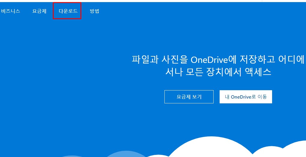 원드라이브 사용방법 중 첫번째는 역시 원드라이브 다운과 설치인데요. 우선 다음에서 [원드라이브]를 검색하여 마이크로소프트사 홈페이지에 접속합니다. 그럼 매인화면에서 좌측 상단에 [다운로드]라는 글씨를 볼 수 있는데요. 이곳을 클릭해주세요.
