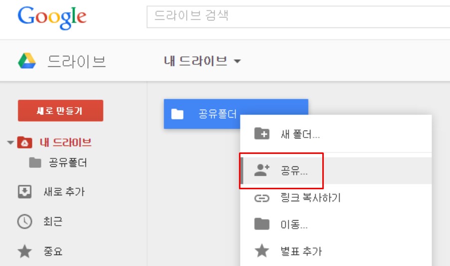 다음 단계는 파일에 마우스를 가져가 오른쪽 버튼을 클릭해주는 것인데요. 메뉴들 중 [공유]를 눌러 친구들에게 파일을 다운받을 수 있는 메일을 보낼 수 있습니다. 다른 방법은 똑같이 마우스를 가져가 오른쪽 버튼을 클릭하여 나오는 메뉴 중 [공유 가능한 링크 가져오기]를 클릭하는 것인데요.