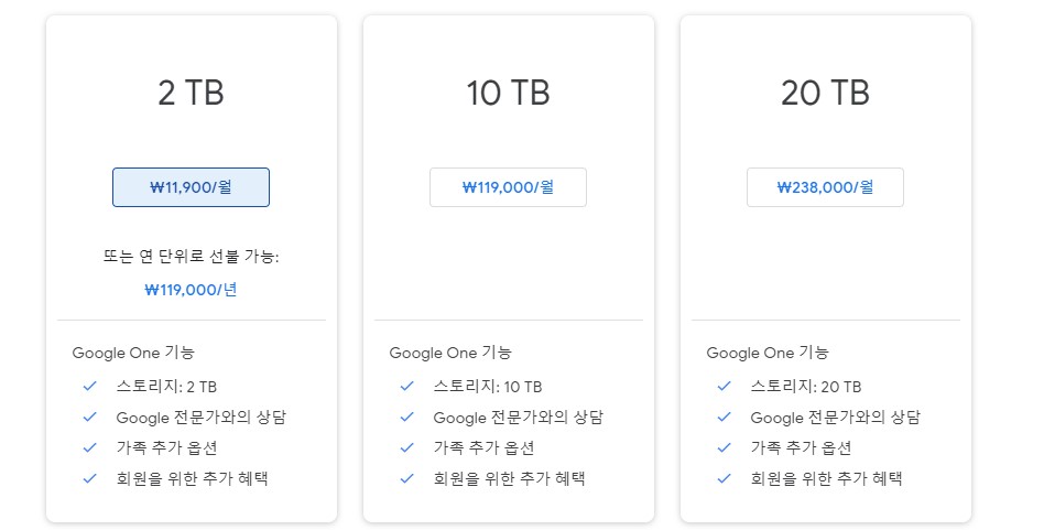 이를 이용해 자신이 원하는 용량을 선택하면 간단히 용량을 늘릴 수 있는데요. 월 단위로 계속하여 결제해야 한다는 것이 신경쓰이지만 저렴한 금액이라 큰 부담을 없을 것 같습니다.