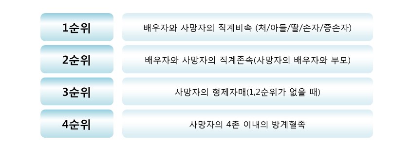 이런 친족의 범위가 많이 사용되는 곳은 유산 상속, 증여세 또는 청약가점제입니다. 상속의 경우 1순위는 직계비속입니다. 그 다음으로 직계존속이 2순위, 4촌 이내 방계혈족이 3순위입니다. 배우자는 직계비속과 공동상속인데, 직계비속이 없다면 직계존속과 공동상속입니다. 증여세의 경우에도 혈족의 범위는 중요합니다.