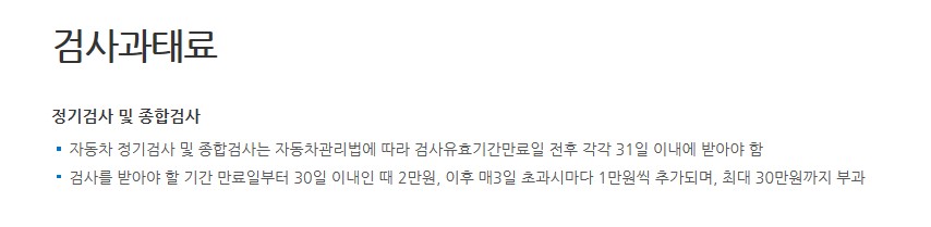 다만 최대 30만원의 과태료의 경우 유효기간 마지막날로부터 1년까지라고 보고 있으며, 만약 1년 이상 경과되게 되면 30만원에 가산금이 추가로 붙게되어 더 큰 금액을 부과하게 되므로 유효기간 내에 자동차검사를 받는 것이 좋겠습니다.