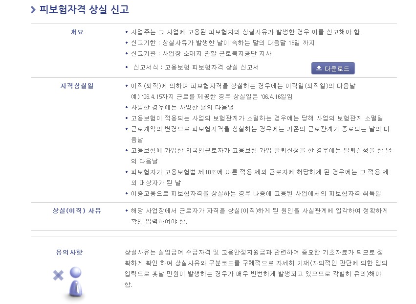 퇴사를 하면 회사측에서는 4대보험 상실신고를 해야 합니다. 고용할 때, 회사가 가입하고 50% 부담했던 보험들은 직원이 퇴사함으로써 해지되고, 퇴사한 직원은 피보험자 자격을 상실하게 됩니다. 그리고 회사측은 피보함자 자격상실신고를 할 때, 이직확인 신고도 같이 해야합니다.