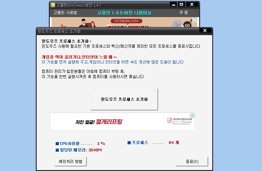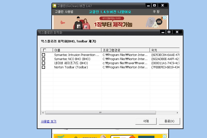 익스플로러 인터넷 광고창 안뜨게 하는법은 '고클린'이라는 프로그램을 추천드려요. 고클린을 다운받으셨다면 가장 먼저 하실 일은 '익스플로러 최적화'입니다. 익스플로러 최적화를 하면 BHO와 Toolbar를 제거할 수 있어요.