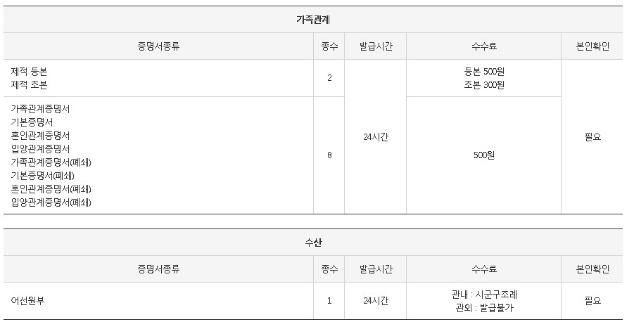 주민들이 직접 동사무소를 방문하는 번거로움을 해소하고자 정부측에서는 각종 증명서를 '전자가족관계등록시스템' 나 '정부24' 홈페이지에서 공인인증서로 로그인만 하면 필요한 증명서를 직접 출력할 수 있는 서비스를 제공하기 시작했죠.